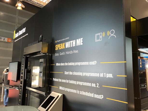 Besonders beeindruckten dabei zwei vorgestellte Studien, die die Zukunft des Ladenbackens näherbringen. Eines davon ist eine universelle Sprachsteuerung für den Backofen. Die Vorteile liegen direkt auf der Hand – im wahrsten Sinne – denn „Hands-free“ ist auch das Motto dabei. Auf der EuroShop konnten Besucher daher erleben, wie sie mit einfachen Sprachbefehlen wie "Heize den Backofen für Brezeln vor" oder "Starte den MIWE Eco-Modus" ihren Arbeitsalltag erleichtern können.