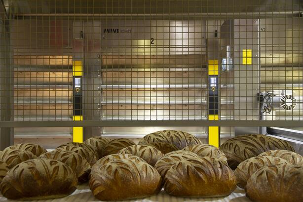 Hudson Bread was founded in 1994 on the banks of the Hudson River in Jersey City. Today, the bakery is located in North Bergen, New Jersey, from where it supplies many of New York City's most famous restaurants, hotels, markets and catering companies. The complete refrigeration technology (including shock froster coil) and the complete baking oven technology are supplied by MIWE. More than 100 employees process around 50,000 kg of dough a day and produce around 150 different products on 60,000 m² of floor space – and an expansion of the production area is already in the works. To achieve the quality demanded, Hudson Bread relies on quality Made in Germany. Whether with or without loading assistance, thermal oil or flue gas, deck or trolley oven: baking is only done here with MIWE equipment. The company has three MIWE ideal deck ovens and two thermal-oil-heated MIWE thermo-express deck ovens in use (both systems are automatically loaded using the MIWE athlet loading system with pick-up for scooping up the dough pieces from trays). Mass-produced goods and other speciality items are baked in the four thermal-oil-heated MIWE thermo-static trolley ovens (with three trolleys each). In terms of the refrigeration technology used, both the proofing retarders (MIWE GV) and proofing interrupters (MIWE GUV) for long-process-proofed breads come from Germany, as do the cooling and froster coils.