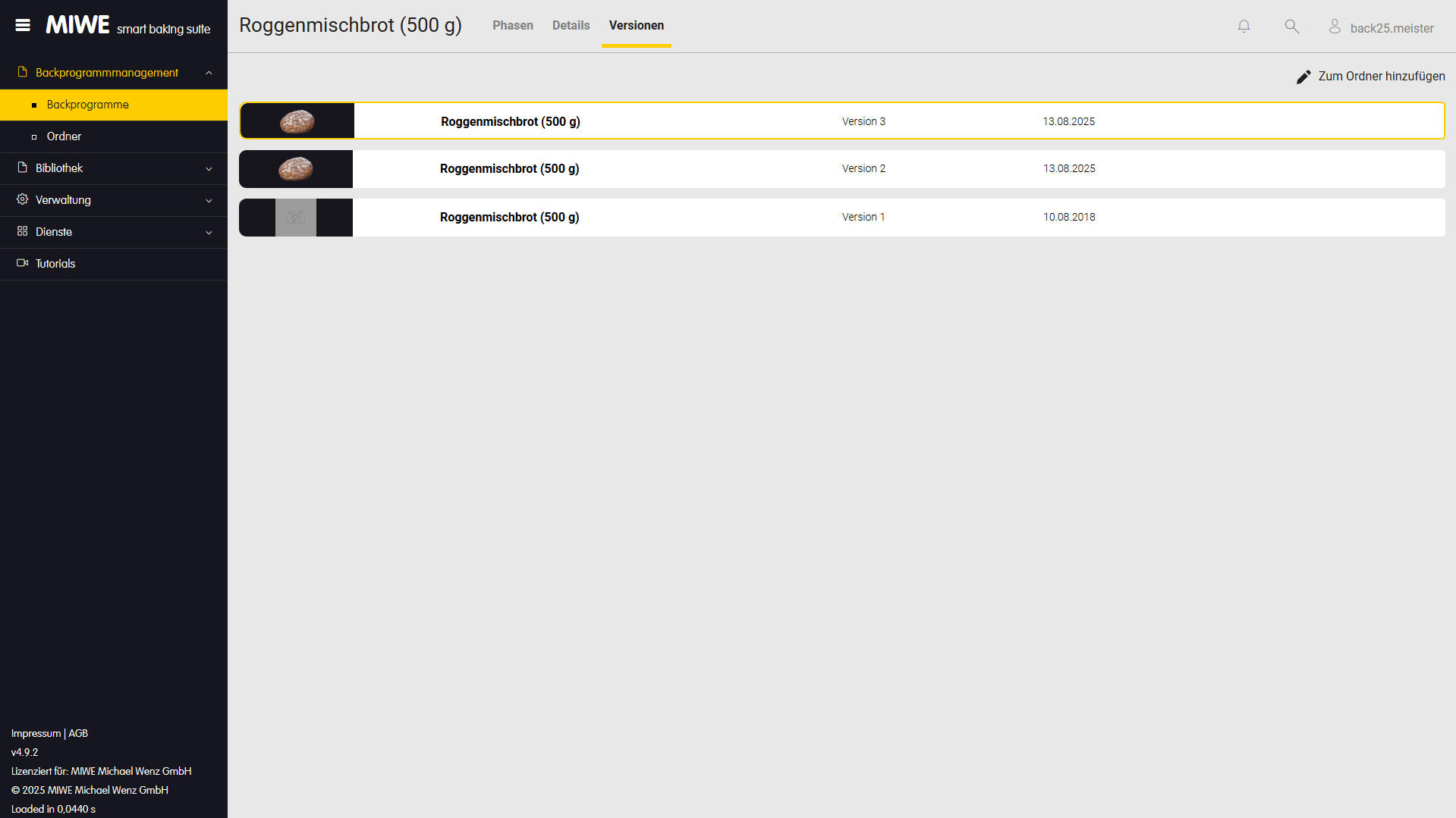 Verwalten Sie verschiedene Versionen Ihrer Backprogramme übersichtlich und nachvollziehbar. Behalten Sie den Überblick über Änderungen und Entwicklungen.