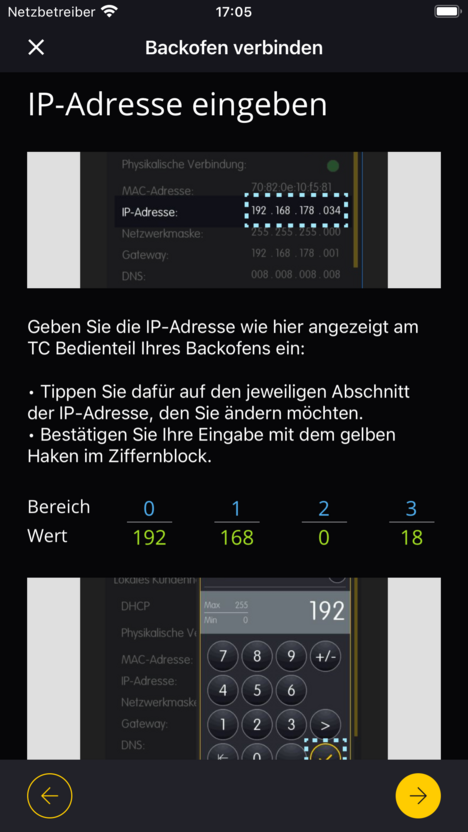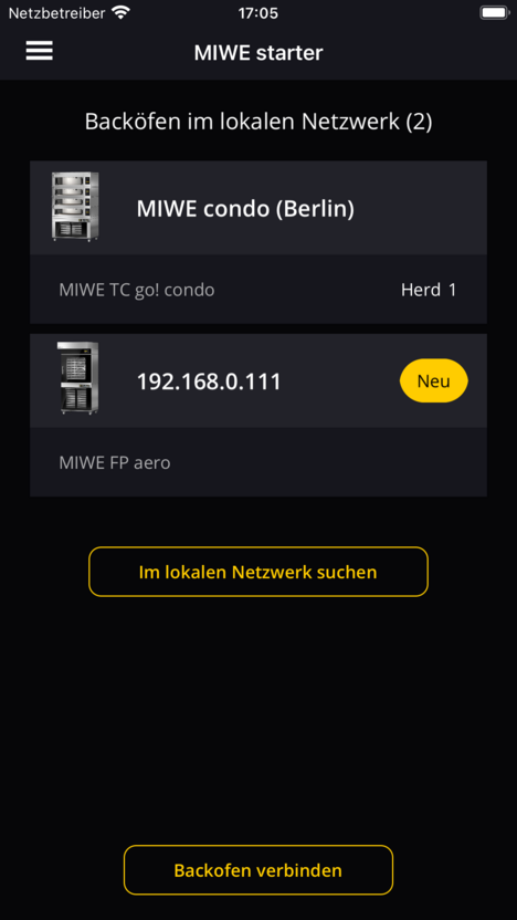 Damit das gelingt, bietet die MIWE starter App eine Schritt-für-Schritt-Anleitung zur lokalen Verbindung des Backofens ins Netzwerk sowie die Möglichkeit, ein Konto in der MIWE public cloud zu erstellen.
