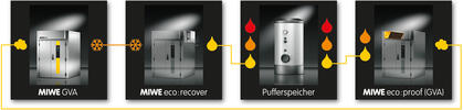 MIWE eco:box utnytter restvarmen fra røykgassen. Vannet som varmes opp med denne energien, brukes til å varme opp tappevannet (og/eller til å hjelpe varmesystemet).