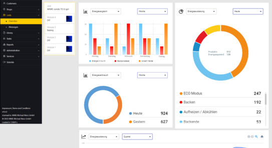 În vremuri de creștere a costurilor energiei, este elementară optimizarea proceselor pentru a economisi costuri. MIWE sbs:energy monitor din cadrul MIWE smart baking suite este instrumentul ideal pentru acest lucru. Acesta afișează consumul de energie al cuptoarelor de coacere conectate în rețea în mod clar și în funcție de diferite criterii. Parametrul tastă elementar este eficiența coacerii, adică raportul dintre timpul real de coacere și timpul total de aprindere. Acest lucru vă ajută să identificați zonele cu probleme, să vă instruiți mai bine personalul și să economisiți energie - și, prin urmare, bani.