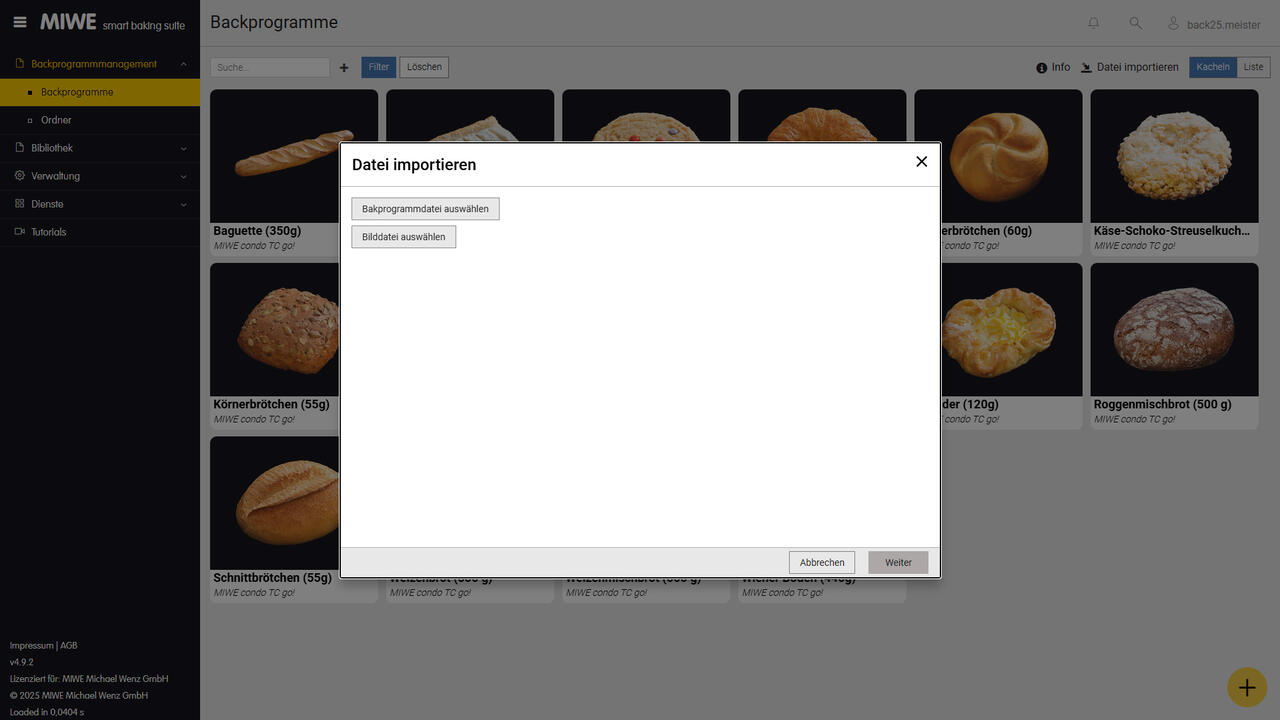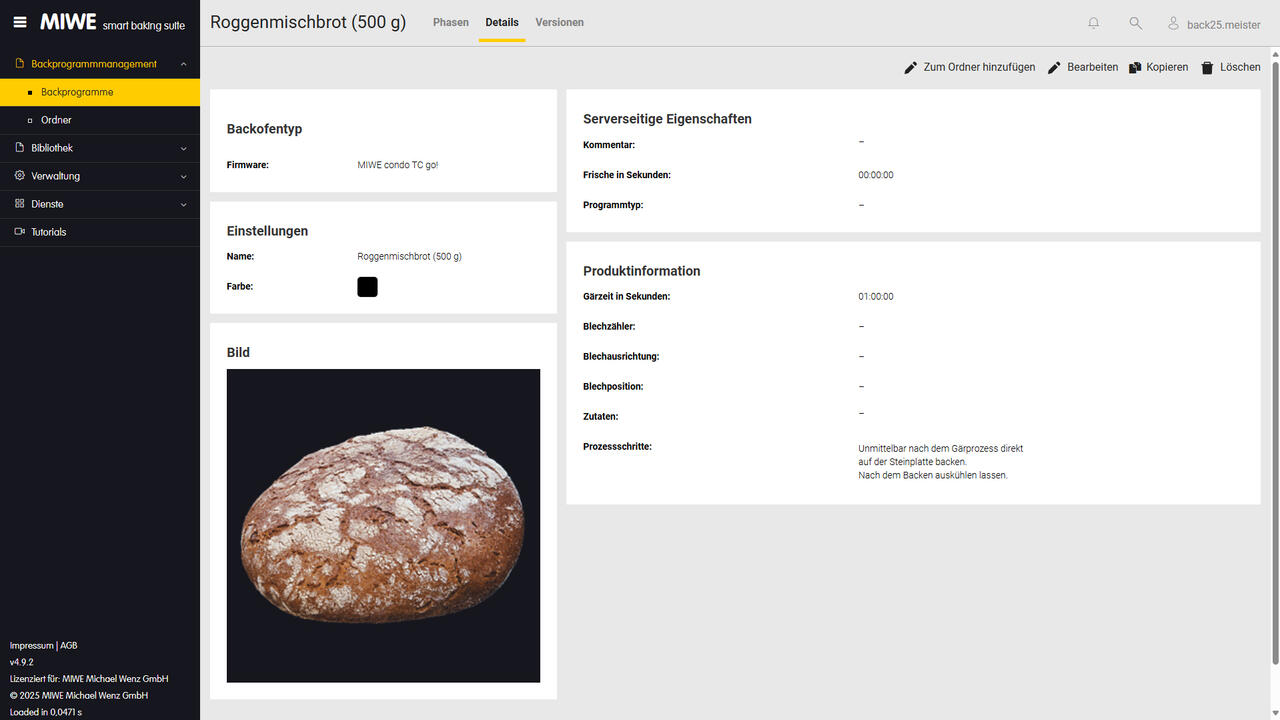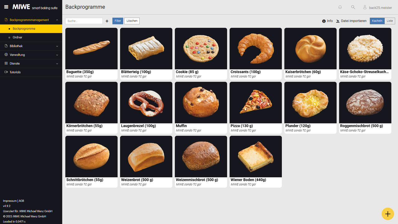 Explore the intuitive user interface and extensive features of the MIWE Baking Program Manager online. Managing your baking programs can be this simple and versatile.