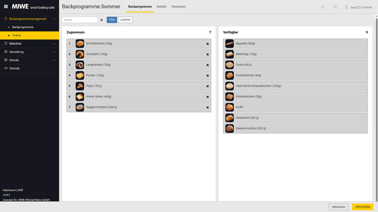 Organise your baking programs in convenient lists. For example, assign seasonal products flexibly – perfect for changing product ranges.