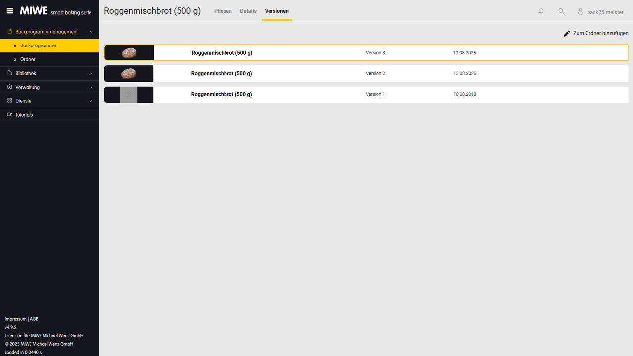 Manage different versions of your baking programs clearly and comprehensibly. Keep track of changes and developments.